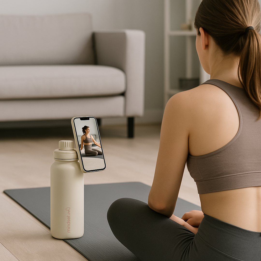 ¿Lo mejor? Cuenta con un imán integrado que sujeta tu celular para que puedas grabarte entrenando, sacar fotos o seguir rutinas mientras haces tus ejercicios favoritos. Perfecta para deportistas, mamás multitareas o cualquiera que quiera hidratarse y registrar sus momentos sin complicaciones.